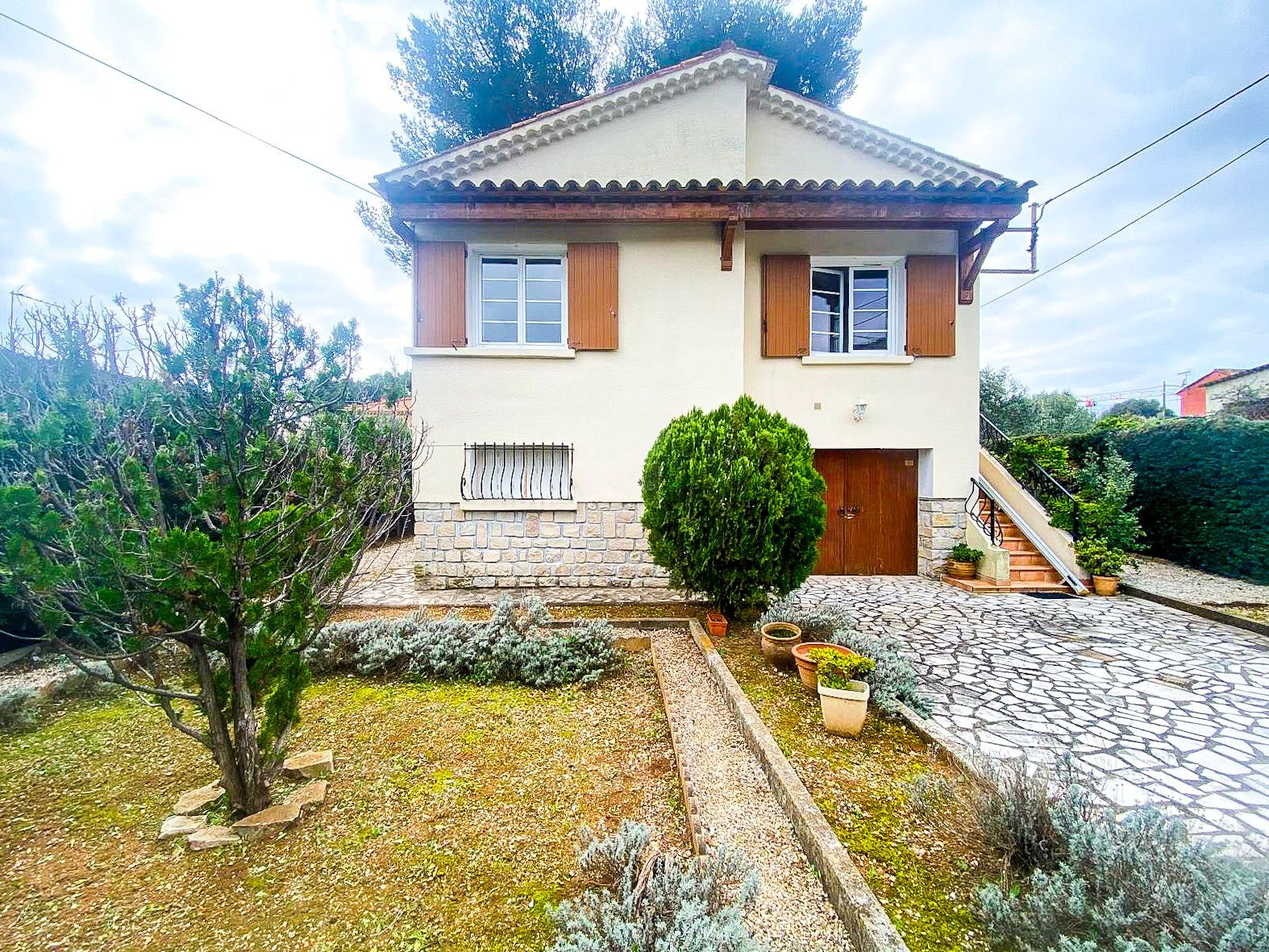 Terrain plat de 468m2, piscinable. Travaux de rénovation à prévoir sur l’appartement en RDC. Travaux de rénovation recemment effectués à l’étage (fenetres en double vitrage, climatisation reversible, cuisine et salle d’eau notamment).