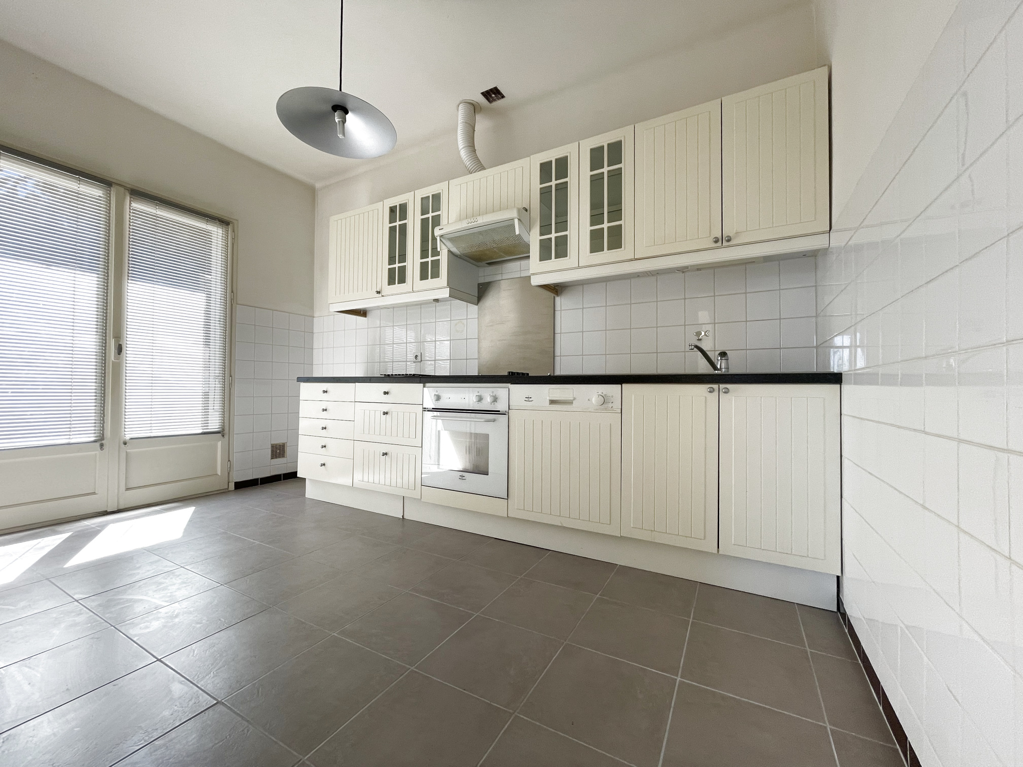 Beaux volumes, nombreuses places de stationnement sur la parcelle et vue dégagée.